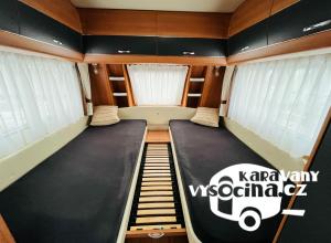 - pro 4 osoby 2 pevné postele 185x85 a 198x85 s možností udělat velkou postel pomocí středového roštu a matrace. Rozkládací sezení 210x130 cm.
